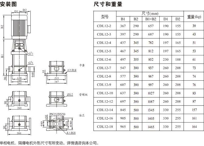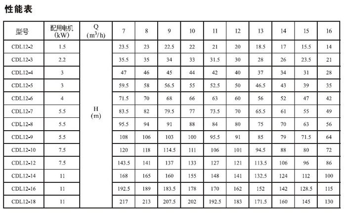 產品介紹 CDLF12-3FSWSC 不銹鋼工業增壓泵是一種多功能產品,可以輸送從自來水到工業液體的各種不同介質,適應于不同溫度、流量和壓力范圍,CDL適用于無腐蝕性液體,CDLF適用于輕度腐蝕性液體。 水:水廠過濾與輸送、水廠分區送水、主管增壓、高層建筑增壓。 工業增壓:流程水系統、清洗系統、高壓沖洗系統、消防系統。 工業液體輸送:冷卻和空調系統、鍋爐給水和冷凝系統、機床配套、酸和堿。 水處理:超濾系統、反滲透系統、蒸餾系統、分離器、游泳池。 灌溉:農田灌溉、噴灌、滴灌。 運行條件 稀薄、干凈、非易燃易爆并不含固體顆粒或纖維的液體。 液體溫度:常溫型 -15℃至+70℃ 熱水型 -15℃至+120℃ 環境溫度:最高+40℃ 海拔:最高1000m CDLF12-3FSWSC 不銹鋼工業增壓泵為安裝標準電機的非自吸式多級離心泵,電機軸通過泵頭用軸聯器直接與泵軸連接,拉桿螺栓將耐壓筒、過流部件固定在泵頭和進出水段之間,泵進出水口在泵底同一直線上;本泵可根據需要配置智能保護器,對泵干轉、缺相、過載等進行有效保護。 電機 電機為全封閉,風冷式二極標準電機。 防護等級:IP55 絕緣等級:F 標準電壓, 50Hz ![]() ![]() ![]() ![]() 因產品生產批次、型號不同,產品圖片及安裝尺寸僅供參考,詳情可聯系我們的銷售人員了解更多CDLF12-3FSWSC 不銹鋼工業增壓泵相關信息!