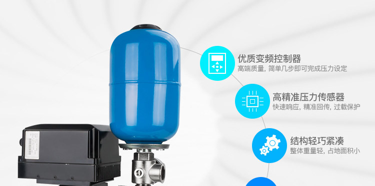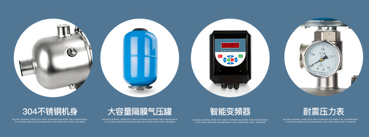 產(chǎn)品介紹 全自動(dòng)家用變頻增壓泵是我們專業(yè)技術(shù)人員在給水設(shè)備的基礎(chǔ)上開(kāi)發(fā)的一種能直接與自來(lái)水管網(wǎng)連接且對(duì)自來(lái)水管網(wǎng)不產(chǎn)生任何副作用的成套給水設(shè)備。全自動(dòng)家用變頻增壓泵取代了蓄水池和屋頂水箱,能充分利用自來(lái)水管網(wǎng)的壓力直接或間接供水,避免了能源的二次浪費(fèi)和水質(zhì)的二次污染,大幅度節(jié)約了基建投資并縮短了施工工期。全自動(dòng)家用變頻增壓泵由智能型數(shù)字控制壓力表,控制柜,穩(wěn)流罐,水泵,閥門(mén)及管路,基座等組成,適用于一切需要增高水壓,恒定流量的給水系統(tǒng)。變頻水泵是小型一體化機(jī)組、小型水泵成套。適用于別墅、學(xué)校、醫(yī)院、賓館太陽(yáng)能熱水工程等小型恒壓供水場(chǎng)所。 一、恒壓變頻泵原理: 本裝備可視系統(tǒng)壓力變化,由壓力感應(yīng)器,依感知信號(hào)與設(shè)定壓力值比較計(jì)算,輸出信號(hào)給專用變頻器。變頻器再根據(jù)傳感器的信號(hào)變化,而改變頻率(0-50Hz),馬達(dá)泵浦隨頻率之變化而改變馬達(dá)轉(zhuǎn)速以達(dá)恒壓功能。 二、恒壓變頻泵功能: 1、壓力調(diào)整,直接在面板上調(diào)整即可,操作簡(jiǎn)單方便 2、缺水失壓保護(hù)功能 :缺水故障,本控制器會(huì)強(qiáng)制馬達(dá)停止運(yùn)轉(zhuǎn)。(自動(dòng)識(shí)別水箱或管道加壓保護(hù)) 3、保護(hù)功能 :過(guò)電壓、過(guò)電流、過(guò)負(fù)載限制、過(guò)熱、低電壓、低電 流、接地保護(hù)、異常接點(diǎn)輸入。 4、能夠在家庭電壓220V的環(huán)境中使用,解決了普通恒壓變頻增壓泵不能在220V中不能運(yùn)行的缺點(diǎn),使用方便 三、恒壓變頻泵應(yīng)用范圍: 1、一般家庭、小高層、高級(jí)別墅、酒店、賓館等需要恒壓供水或加壓不需要水塔、水池的場(chǎng)所。 2、住宅小區(qū)房屋頂部二次加壓和其他水壓不夠需要加壓的場(chǎng)所。 3、冷水用(使用溫度:最高75°C),熱水用(使用溫度:最高120°C) 4、不能二次污染水質(zhì)的場(chǎng)所。 ![]() ![]() ![]()
