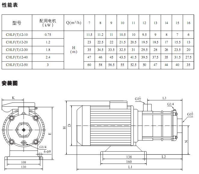 產(chǎn)品介紹 CHLF12-20LSWSC臥式多級(jí)離心泵非自吸離心泵是渤泉泵業(yè)制造有限公司制造的主導(dǎo)產(chǎn)品,配加長(zhǎng)軸電機(jī)采用了免修機(jī)械密封,緊湊式結(jié)構(gòu)使泵尺寸很小,軸向入口和徑向出口。輕型段式多級(jí)離心泵的過流部件均采用不銹鋼材料(304或316)制成,輕型不銹鋼多級(jí)離心泵具有低噪音,耐輕腐蝕,外形美觀、體積小、重量輕、使用壽命長(zhǎng)等特點(diǎn),不同材質(zhì)的硬質(zhì)合金密封,保證了不同介質(zhì)輸送均無泄漏;噪音低:兩個(gè)低噪音軸承下的水泵,運(yùn)轉(zhuǎn)平穩(wěn),除電機(jī)微弱聲響,基本無噪聲;故障率低:結(jié)構(gòu)簡(jiǎn)單合理,整機(jī)無故障工作時(shí)間大大提高。采用國(guó)內(nèi)優(yōu)秀水力模型優(yōu)化設(shè)計(jì)而成,是理想的新一代高效節(jié)能輕型臥式多級(jí)離心泵。采用了免修機(jī)械密封。輕型段式多級(jí)離心泵的過流部件均采用不銹鋼材料(304或316)制成,具有低噪音,耐輕腐蝕,外形美觀、體積小、重量輕、使用壽命長(zhǎng)等特點(diǎn)。 二、應(yīng)用范圍: CHLF12-20LSWSC臥式多級(jí)離心泵主要用于家庭型中央空調(diào)循環(huán)及工業(yè)上液體的傳輸。如脫礦物質(zhì)水、軟水、凈化系統(tǒng)、輕油等的循環(huán)和增壓。 1)小型中央空調(diào)循環(huán) 2)冷卻系統(tǒng) 3)工業(yè)清洗 4)水處理(水的凈化) 5)水產(chǎn)養(yǎng)殖 6)施肥/計(jì)量系統(tǒng) 7)環(huán)境應(yīng)用 三、工作條件: 稀薄、干凈、不凝、不爆炸、不含固體顆粒或纖維的液體。 液體溫度: 常溫型-15℃至+70℃ 熱水型+70℃至+110℃ 最大環(huán)境溫度:+40℃ 最大運(yùn)作壓力:10巴 最大進(jìn)口壓力受最大運(yùn)作壓力限制 介質(zhì)酸堿性:PH4~9 四、輸送液體: 1、稀薄、清潔、不含固體顆粒或纖維的非易燃易爆液體。 2、泵可以輸送諸如礦泉水、軟化水、純水、清油和其它輕化工介質(zhì)。 3、當(dāng)輸送液體的密度或粘度大于水,如需要,必須配用大功率電機(jī)。 4、泵是否適用于某一特定液體由多種因素決定,其中最重要的是氯含量、PH值、溫度和溶濟(jì)、油的含量等。 五、曲線條件: 下述條件適用于后面所示性能曲線。 1、所有曲線都基于電機(jī)在恒速2900rpm的測(cè)量值。 2、曲線容差符合ISO9906,附錄A。 3、測(cè)試采用20℃不含空氣的水,運(yùn)動(dòng)粘度為1mm2/s。 4、泵的使用參照加粗曲線的性能范圍,以防流量過小產(chǎn)生過熱和流量過大使電機(jī)過載等。 六、電機(jī): 輕型段式多級(jí)離心泵電機(jī)為全封閉,風(fēng)冷式二極電機(jī) 防護(hù)等級(jí):IP55 絕緣等級(jí):F 標(biāo)準(zhǔn)電壓, 50Hz: 1×220-240V 3×220-240V 380-415V ![]() ![]() 因產(chǎn)品生產(chǎn)批次、型號(hào)不同,產(chǎn)品圖片及安裝尺寸僅供參考,詳情可聯(lián)系我們的銷售人員了解更多CHLF12-20LSWSC臥式多級(jí)離心泵相關(guān)信息!