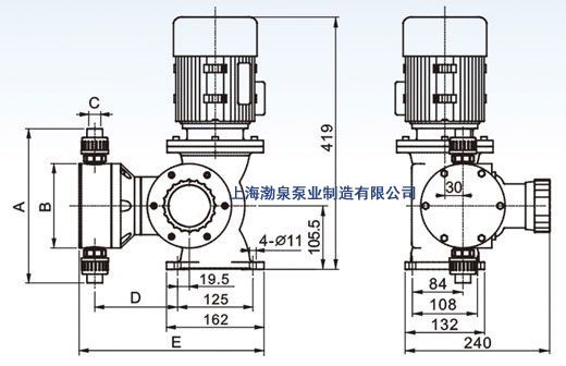 產(chǎn)品介紹 GM240/0.5 防腐蝕隔膜式計量泵產(chǎn)品介紹 流量范圍:0-500 L/H 壓力范圍: 0-1.0 MPA 電機功率: 370W,220V / 380V / 420V / 110V, 50/60Hz 驅動系統(tǒng): 兩相、三相電機或防爆電機 防護等級: IP55 流量控制:手動控制, 自動控制(接收4-20mA 信號) GM240/0.5 防腐蝕隔膜式計量泵材料 泵頭: SUS304, SUS316, PVC, PTFE 隔膜: PTFE 單向閥: SUS304, SUS316, PVC, PTFE 閥球: ZrO2, SUS304, SUS316, 陶瓷 工作條件 環(huán)境溫度: -30℃ --- 80℃ 技術參數(shù)