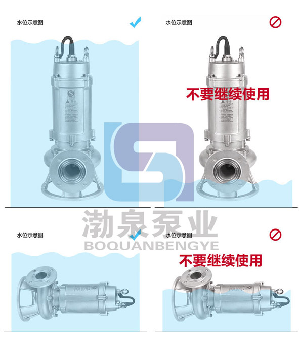 使用條件: 1、以葉輪中心為準,潛入水下深度不得超過5m。 2、輸送介質溫度不高于100℃。 3、輸送介質的PH值304(4-10),316(2-13).