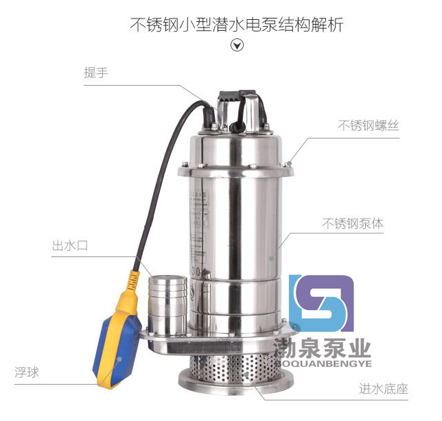 產品介紹 50QDX15-18-1.1 手提式耐酸堿小型潛水泵由水泵、密封、電動機三部分組成。電動機位于電泵上部,為單相或三相異步電動機,水泵位于電動機下部,為離心式葉輪,渦殼結構,水泵與電機之間采用雙端面機械密封。 用途: 50QDX15-18-1.1 手提式耐酸堿小型潛水泵系列不銹鋼潛水泵,主要用于農田灌溉、養殖供水、園林澆噴、旅館、食堂、高層建筑供水等。 優點: 體積小、重量輕、移動方便、安裝簡便、揚程高。 使用條件: 潛水泵在下列使用條件下應能連續正常工作: 1、介質溫度不超過+40℃; 2、介質的PH值在6.5-8.5之間; 3、介質中含固體雜質的體積比不超過0.1%,粒度不大于0.2mm 4、電源頻率為50Hz,電壓單相220V、三相380V,電壓波動范圍為額定值的0.9-1.1倍; 5、潛水深度不超過5m。 使用注意事項 1、使用前請仔細檢查電纜線,檢查是否在運輸過程中是否造成電纜線的破損。檢查完好后接入控制箱使用。 2、控制箱必須帶有過流、過壓(三相380V±5%、單相220V±5%的電源范圍內)、缺相、反轉、防漏電功能等保護裝置。 3、必須斷開電源后對水泵進行檢查維修。 4、在未斷開電源的情況下身體任何部位(特別是手指)不得靠近水泵進水口位置。避免以外發生。 ![]() ![]() ![]() ![]() 因產品生產批次、型號不同,產品圖片及安裝尺寸僅供參考,詳情可聯系我們的銷售人員了解更多50QDX15-18-1.1 手提式耐酸堿小型潛水泵相關信息!