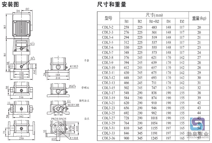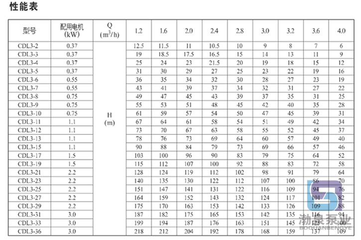 產品介紹 CDLF3-15FSWSC 立式多級離心泵是一種多功能產品,可以輸送從自來水到工業液體的各種不同介質,適應于不同溫度、流量和壓力范圍,CDL不銹鋼多級泵適用于無腐蝕性液體,CDLF適用于輕度腐蝕性液體。 水:水廠過濾與輸送、水廠分區送水、主管增壓、高層建筑增壓。 工業增壓:流程水系統、清洗系統、高壓沖洗系統、消防系統。 工業液體輸送:冷卻和空調系統、鍋爐給水和冷凝系統、機床配套、酸和堿。 水處理:超濾系統、反滲透系統、蒸餾系統、分離器、游泳池。 灌溉:農田灌溉、噴灌、滴灌。 運行條件 稀薄、干凈、非易燃易爆并不含固體顆粒或纖維的液體。 液體溫度:常溫型 -15℃至+70℃ 熱水型 -15℃至+120℃ 環境溫度:最高+40℃ 海拔:最高1000m CDLF3-15FSWSC 立式多級離心泵為安裝標準電機的非自吸式多級離心泵,電機軸通過泵頭用軸聯器直接與泵軸連接,拉桿螺栓將耐壓筒、過流部件固定在泵頭和進出水段之間,泵進出水口在泵底同一直線上;本泵可根據需要配置智能保護器,對泵干轉、缺相、過載等進行有效保護。 電機 電機為全封閉,風冷式二極標準電機。 防護等級:IP55 絕緣等級:F 標準電壓, 50Hz ![]() 因產品生產批次、型號不同,產品圖片及安裝尺寸僅供參考,詳情可聯系我們的銷售人員了解更多CDLF3-15FSWSC 立式多級離心泵相關信息!