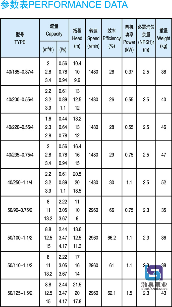 產品介紹 KQL40/235-0.75/4 立式空調循環泵供輸送不含固體顆粒的清水及物理化學性質類似于水的液體之用。同時根據使用溫度、介質等不同在ISG型管道離心泵基礎上派出適用熱水、高溫、腐蝕性化工泵、油泵。該產品具有同效節能、噪音低、性能穩定等特點。 用途: KQL40/235-0.75/4 立式空調循環泵用于空調、采暖、衛生用水、水處理冷卻冷凍系統、液體循環和供水、增壓及灌溉等領域中無腐蝕的冷水和熱水輸送。 工作條件: 轉速:2960r/min,1480r/min或980r/min 流量范圍:1.8~2000m3/h 揚程:≤127m 介質溫度:-10℃~120℃ 環境溫度:最大+40℃;海拔高度小于1000m;相對濕度不超過95% 材質: 泵殼、泵蓋、葉輪:鑄鐵 泵軸:45#鋼鍍鉻或不銹鋼(2Cr13) 機械密封動、靜環:浸銻石墨、碳化硅 結構:結構緊湊的單級泵,適用于現代建筑物。 產品特點: KQL40/235-0.75/4 立式空調循環泵結構緊湊、合理,泵與電機直接連接,外形美觀,占地面積小效率高,閉式鑄鐵葉輪,葉輪懸臂短,機泵軸完全同心,泵運行平穩、可靠,噪音低壽命長,強制環流沖洗機械密封,免保養、無滲漏。 管道泵選型指南: 例如:KQL80/160-7.5/2 或KQW80/160-7.5 KQL標準立式單級離心泵,KQW標準臥式單級離心泵 80進出口直徑 160葉輪名義直徑 7.5/2電機功率/電機極數 ![]() ![]() 因產品生產批次、型號不同,產品圖片及安裝尺寸僅供參考,詳情可聯系我們的銷售人員了解更多KQL40/235-0.75/4 立式空調循環泵相關信息!