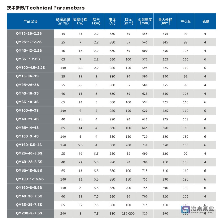 產品介紹 產品概述/Product Overview QY15-36-3S 全不銹鋼充油式潛水電泵外殼及過流部件采用不銹鋼精密鑄造,具有衛生、環保、耐腐蝕、外觀精美等特點。 產要特點:/Main Features 1、采用雙端面、單端面雙道機封為動密封,采用氟橡膠.0型圈為靜密封,密封更可靠。 2、采用F級絕緣電機,底部采用錐形軸承設計,增加水泵運轉的可靠性,提高了使用壽命。 3、高揚程泵采用浮動油囊結構.電泵溫度升高,油囊水下調.以防溫度升高爆裂.調節內外壓力,保證泵運行的安全性、可靠性。 主要用途/The Main Purpose 該系列潛水泵由于流量及揚程的適用范圍極廣,是廣大農村、工礦企業廣泛適用的電力排灌設備,適用于煤礦排水、農業排灌、園林排灌、井下提水、水塔送水、城建用水、海水養殖等給排水。 使用條件/Conditions Of Use QY15-36-3S 全不銹鋼充油式潛水電泵在下列使用條件下應能連續正常工作: 1、介質溫度不超過+40C ; 2、介質的PH值304(4-10),316(4-13) 之間; 3、介質中含有固體雜質比不超過0.1%粒度不大于0.2mm; 4、潛水深度不超過5m. ![]() ![]() 因產品生產批次、型號不同,產品圖片及安裝尺寸僅供參考,詳情可聯系我們的銷售人員了解更多QY15-36-3S 全不銹鋼充油式潛水電泵相關信息!