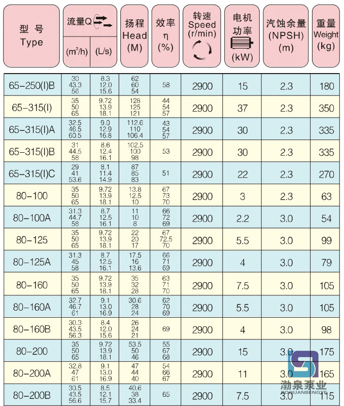 產品介紹 ISW80-160A 臥式管道增壓泵是采用IS型離心泵之性能參數,在一般臥式泵的基礎上進行巧妙組合設計而成,同時根據使用溫度、介質等不同在ISW型管道泵基礎上派生出適用熱水泵、高溫、耐腐蝕化工泵、油泵。該系列產品具有高效節能、噪音低、性能可靠等優點,符合JB/T53058-93的標準要求,產品按ISO2858標準設計制造。具有效率高、流量及揚程范圍大、結構合理、成本低、壽命長、占地面積小、安裝維修方便等特點。是替代IS、DL等常規產品的新離心泵,特別適用于高層建筑的給排水、噴灌、冶金、市政、礦山水處理排污,食品、化工、空調及其他行業輸送水、化學介質及其他液體。 ISW80-160A 臥式管道增壓泵流量范圍15~1200m3 /h,分基本型、擴流型、A、B、C切割型等250多種規格,并根據流體介質和溫度不同又派生出清水泵、熱水泵、化工泵、防爆油泵、防爆化工泵等系列產品。 ISW80-160A 臥式管道增壓泵主要用途 1、ISW臥式清水泵供輸送清水及物理化學性質類似于清水的其它液體之用,適用于工業和城市給排水、高層建筑增壓送水、園林噴灌、消防增壓、遠距離輸送、暖通制冷循環、浴室等冷暖水循環增壓及設備配套,使用溫度T≤80℃。 2、ISWR臥式熱水泵,廣泛適用于:冶金、化工、紡織、造紙以及賓館飯店等鍋爐熱水增壓循環輸送及城市采暖系統,ISWR型使用溫度T≤120℃。 3、ISWH臥式化工泵,供輸送不含固體顆粒,具有腐蝕性。粘度類似于水的液體,適用于石油、化工、冶金、電力、造紙、食品、制藥和合成纖維等部門,使用溫度為-20℃~+120℃。 4、ISWY臥式管道油泵,供輸送汽油、煤油、柴油等油類產品或易燃、易爆液體,被輸送介質溫度為-20℃~120℃。 5、ISWHY型臥式不銹鋼防爆化工離心泵,適用于輸送易燃性化工液體。 6、ISWD臥式低轉速泵,適應要求環境噪聲很低的場合,使用溫度T≤120℃。 ISW80-160A 臥式管道增壓泵工作條件 1.吸入壓力≤1.0MPa,或泵系統最高工作壓力≤1.6MPa,即吸入口壓力+泵揚程≤1.6MPa、泵靜壓試驗壓力為≤2.5MPa,訂貨時請注明系統工作壓力。泵系統工作壓力大于1.6MPa時應在訂貨時另行提出,以便在制造時泵的過流部分和聯接部分采用鑄鋼材料。 2.環境溫度<40℃,相對濕度<40%。 3.所輸送介質中固體顆粒體積含量不超過單位體積的0.1,粒度<0.2mm。 注:如果用介質為帶有細小顆粒,請在訂貨時說明,以便廠家采用耐磨式機械密封。 ISW80-160A 臥式管道增壓泵產品特點 運行平穩:泵軸的絕對同心度及葉輪優異的動靜平衡,保證平穩運行,絕無振動。 滴水不漏:不同材質的硬質合金密封,保證了不同介質輸送均無泄漏。 噪音低:兩個低噪音軸承支撐下的水泵,運轉平穩,除電機微弱聲響,基本無噪音。 故障率低:結構簡單合理,關鍵部分采用品質配套,整機無故障工作時間大大提高。 維修方便:更換密封、軸承,簡易方便。 占地更?。撼隹诳上蜃?、向右、向上三個方向,便于管道布置安裝,節省空間。 ![]() ![]() ![]() 因產品生產批次、型號不同,產品圖片及安裝尺寸僅供參考,詳情可聯系我們的銷售人員了解更多ISW80-160A 臥式管道增壓泵相關信息!