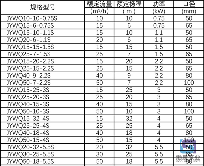 產品介紹 JYWQ100-7-5.5S 不銹鋼攪勻潛污泵采用不銹鋼精密鑄造外殼,具有耐腐蝕、環保型、揚程高、流量大等特點。 產品特點 1.JYWQ100-7-5.5S 不銹鋼攪勻潛污泵采用獨特的單、雙流道式葉輪結構,提高了污物的通過能力,根據產品型號能通過泵口徑5倍的纖維,與直徑約為泵出口口徑50%的固體顆粒。 2.采用氟橡膠雙端面機封,氟橡膠徑向O型圈密封,有效對環境惡劣的液體進行密封保護作用。 3.采用精密鑄造泵殼,重量輕、耐腐蝕、節能型、外形美觀、檢修方便、無需建泵房,潛入水中即可工作,減少工程價。 4.不銹鋼排污泵內安裝過熱與電流保護器,防止電機過載發熱。特點:利用泵自身出水壓力,攪勻污水池內沉淀污泥,真正達到徹底排出污水池沉淀物的目的。 主要用途 JYWQ100-7-5.5S 不銹鋼攪勻潛污泵適用于建筑樓宇、醫院、住宅小區、市政工程、道路交通及施工、工廠排污、養殖、藥業、飲料、海水鹽水、一般腐蝕性介質中含有的固體顆粒、長纖維廢水、污水。 排污泵使用條件 1.以葉輪中心為準,潛入水下深度不得超過5m; 2.輸送介質溫度不高于60C ; 3.輸送介質的運動黏度為7x 10-~23x 10-m'/S ![]() ![]() ![]() 因產品生產批次、型號不同,產品圖片及安裝尺寸僅供參考,詳情可聯系我們的銷售人員了解更多JYWQ100-7-5.5S 不銹鋼攪勻潛污泵相關信息!