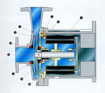 | | 1 | 泵 體 | 不銹鋼 | | 2 | 葉 輪 | 不銹鋼 | | 3 | 隔 板 | 不銹鋼 | 4 | 主 軸 | 不銹鋼 | | 5 | 轉子組合 | 稀土永磁體+不銹鋼 | | 6 | 隔套總成 | 不銹鋼 | | 7 | 動 環 | 填充F4 | | 8 | 軸 承 | 填充F4 | | 9 | 靜 環 | 碳化硅或氧化鋁陶瓷 | | 10 | 密封圈 | 氟橡膠 | | 六、型號意義: