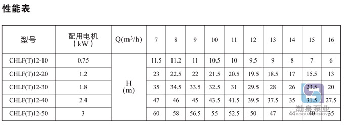 產品介紹 CHLF12-30LSWSC節段式臥式多級離心泵配加長軸電機采用了免修機械密封,緊湊式結構使泵尺寸很小,軸向入口和徑向出口。輕型段式多級離心泵的過流部件均采用不銹鋼材料(304或316)制成,輕型不銹鋼多級離心泵具有低噪音,耐輕腐蝕,外形美觀、體積小、重量輕、使用壽命長等特點,不同材質的硬質合金密封,保證了不同介質輸送均無泄漏;噪音低:兩個低噪音軸承下的水泵,運轉平穩,除電機微弱聲響,基本無噪聲;故障率低:結構簡單合理,整機無故障工作時間大大提高。采用國內優秀水力模型優化設計而成,是理想的新一代高效節能輕型臥式多級離心泵。采用了免修機械密封。輕型段式多級離心泵的過流部件均采用不銹鋼材料(304或316)制成,具有低噪音,耐輕腐蝕,外形美觀、體積小、重量輕、使用壽命長等特點。 二、應用范圍: 主要用于家庭型中央空調循環及工業上液體的傳輸。如脫礦物質水、軟水、凈化系統、輕油等的循環和增壓。 1)小型中央空調循環 2)冷卻系統 3)工業清洗 4)水處理(水的凈化) 5)水產養殖 6)施肥/計量系統 7)環境應用 三、工作條件: 稀薄、干凈、不凝、不爆炸、不含固體顆粒或纖維的液體。 液體溫度: 常溫型-15℃至+70℃ 熱水型+70℃至+110℃ 最大環境溫度:+40℃ 最大運作壓力:10巴 最大進口壓力受最大運作壓力限制 介質酸堿性:PH4~9 四、輸送液體: 1、稀薄、清潔、不含固體顆粒或纖維的非易燃易爆液體。 2、泵可以輸送諸如礦泉水、軟化水、純水、清油和其它輕化工介質。 3、當輸送液體的密度或粘度大于水,如需要,必須配用大功率電機。 4、泵是否適用于某一特定液體由多種因素決定,其中最重要的是氯含量、PH值、溫度和溶濟、油的含量等。 五、曲線條件: 下述條件適用于后面所示性能曲線。 1、所有曲線都基于電機在恒速2900rpm的測量值。 2、曲線容差符合ISO9906,附錄A。 3、測試采用20℃不含空氣的水,運動粘度為1mm2/s。 4、泵的使用參照加粗曲線的性能范圍,以防流量過小產生過熱和流量過大使電機過載等。 六、電機: 電機為全封閉,風冷式二極電機 防護等級:IP55 絕緣等級:F 標準電壓, 50Hz: 1×220-240V 3×220-240V 380-415V ![]() 因產品生產批次、型號不同,產品圖片及安裝尺寸僅供參考,詳情可聯系我們的銷售人員了解更多CHLF12-30LSWSC節段式臥式多級離心泵相關信息!