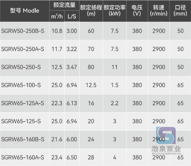 產(chǎn)品介紹 主要用途 SGRW65-100-S不銹鋼臥式管道離心泵可供輸送清水及物理化學性質(zhì)類似于清水的其他液體之用,適用于工業(yè)和城市給排水、高層建筑增壓送水、園林噴灌、消防增壓、遠距離輸送、暖通制冷等冷熱水循環(huán)增壓及設備配套、能源、治金、化工、紡織、造紙以及賓館、飯店等鍋爐熱水增壓輸送及城市采暖系統(tǒng)循環(huán)用泵,使用介質(zhì)溫度T≤103℃。 產(chǎn)品特點 1、泵結(jié)構緊湊、體積小、外形美觀。 2、進出口徑相同,安裝方便,無需改變管路,可像閥門一樣直接安裝在管路任何部位。 3、機泵同軸,簡化了中間結(jié)構,增加了運行的平穩(wěn)性,葉輪具有很好的動靜平衡,運行時震動小、噪音低,延長了軸承的使用壽命,改善了使用環(huán)境。 4、電機采用高效散熱鑄鋁機殼、進口軸承、不銹鋼316焊接轉(zhuǎn)子軸、氟橡膠“O”形圈、氟橡膠機械密封,過流部件全部采用不銹鋼精密鑄造。 5、維修方便、無須拆卸管道,只要拆下連接架,取出電機及傳動組件即可進行檢修維護。 6、其結(jié)構,精心設計,不僅縮小了泵房面積,改善了空間,而且大大節(jié)省基建投資。 7、可定制防爆電機,可定制四氟機封。 使用條件 1、適用介質(zhì):固體不溶物體積含量不超過單位體積的0.1%,粒度不大于0.2mm。(介質(zhì)如帶有細小顆粒須采用耐磨式機械密封,請在訂貨時說明。) 2、周圍環(huán)境溫度不超過40℃,相對濕度不超過95%,海拔高度不超過1000m; 3、輸送介質(zhì)的PH值304(4-10)、316(2-13); 4、輸送介質(zhì)的密度≤1.05×103kg/m3; 5、使用電壓220V/380V,頻率50Hz,電壓波動不超過額定值的±10%。 型號說明 ![]() ![]() 因產(chǎn)品生產(chǎn)批次、型號不同,產(chǎn)品圖片及安裝尺寸僅供參考,詳情可聯(lián)系我們的銷售人員了解更多SGRW65-100-S不銹鋼臥式管道離心泵相關信息!