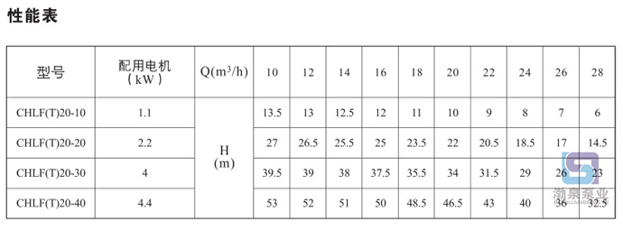 產(chǎn)品介紹 CHLF20-40LSWSC輕型臥式多級離心泵配加長軸電機(jī)采用了免修機(jī)械密封,緊湊式結(jié)構(gòu)使泵尺寸很小,軸向入口和徑向出口。輕型段式多級離心泵的過流部件均采用不銹鋼材料(304或316)制成,輕型不銹鋼多級離心泵具有低噪音,耐輕腐蝕,外形美觀、體積小、重量輕、使用壽命長等特點,不同材質(zhì)的硬質(zhì)合金密封,保證了不同介質(zhì)輸送均無泄漏;噪音低:兩個低噪音軸承下的水泵,運轉(zhuǎn)平穩(wěn),除電機(jī)微弱聲響,基本無噪聲;故障率低:結(jié)構(gòu)簡單合理,整機(jī)無故障工作時間大大提高。采用國內(nèi)優(yōu)秀水力模型優(yōu)化設(shè)計而成,是理想的新一代高效節(jié)能輕型臥式多級離心泵。采用了免修機(jī)械密封。輕型段式多級離心泵的過流部件均采用不銹鋼材料(304或316)制成,具有低噪音,耐輕腐蝕,外形美觀、體積小、重量輕、使用壽命長等特點。 二、應(yīng)用范圍: 主要用于家庭型中央空調(diào)循環(huán)及工業(yè)上液體的傳輸。如脫礦物質(zhì)水、軟水、凈化系統(tǒng)、輕油等的循環(huán)和增壓。 1)小型中央空調(diào)循環(huán) 2)冷卻系統(tǒng) 3)工業(yè)清洗 4)水處理(水的凈化) 5)水產(chǎn)養(yǎng)殖 6)施肥/計量系統(tǒng) 7)環(huán)境應(yīng)用 三、工作條件: 稀薄、干凈、不凝、不爆炸、不含固體顆粒或纖維的液體。 液體溫度: 常溫型-15℃至+70℃ 熱水型+70℃至+110℃ 最大環(huán)境溫度:+40℃ 最大運作壓力:10巴 最大進(jìn)口壓力受最大運作壓力限制 介質(zhì)酸堿性:PH4~9 四、輸送液體: 1、稀薄、清潔、不含固體顆粒或纖維的非易燃易爆液體。 2、泵可以輸送諸如礦泉水、軟化水、純水、清油和其它輕化工介質(zhì)。 3、當(dāng)輸送液體的密度或粘度大于水,如需要,必須配用大功率電機(jī)。 4、泵是否適用于某一特定液體由多種因素決定,其中最重要的是氯含量、PH值、溫度和溶濟(jì)、油的含量等。 五、曲線條件: 下述條件適用于后面所示性能曲線。 1、所有曲線都基于電機(jī)在恒速2900rpm的測量值。 2、曲線容差符合ISO9906,附錄A。 3、測試采用20℃不含空氣的水,運動粘度為1mm2/s。 4、泵的使用參照加粗曲線的性能范圍,以防流量過小產(chǎn)生過熱和流量過大使電機(jī)過載等。 六、電機(jī): 電機(jī)為全封閉,風(fēng)冷式二極電機(jī) 防護(hù)等級:IP55 絕緣等級:F 標(biāo)準(zhǔn)電壓, 50Hz: 1×220-240V 3×220-240V 380-415V ![]() 因產(chǎn)品生產(chǎn)批次、型號不同,產(chǎn)品圖片及安裝尺寸僅供參考,詳情可聯(lián)系我們的銷售人員了解更多CHLF20-40LSWSC輕型臥式多級離心泵相關(guān)信息!