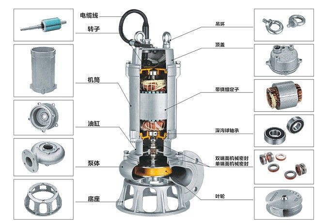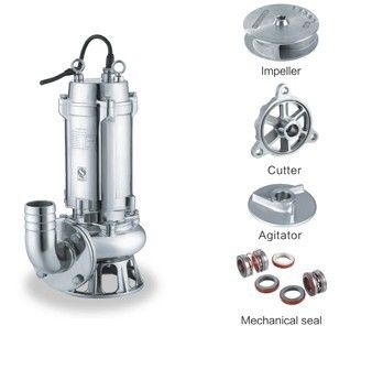 WQ不銹鋼耐腐蝕潛水泵概述 1,國標(biāo)法蘭WQ(D)-S全不銹鋼潛水排污泵采用不銹鋼精密鑄造外殼,具有耐腐蝕,環(huán)保型,揚程高,流量大等特點。 2,油室采用氟橡膠雙面機械密封,外室采用單面氟橡膠機械油封結(jié)構(gòu),有效地減少因骨架油封與軸之間摩擦而造成的密封進水問題。 3,電機采用高溫線,F級絕緣,熱保護裝置,有效地延長泵的使用壽命。 4,根據(jù)客戶要求,可帶攪勻裝置,該裝置隨電機軸旋轉(zhuǎn)產(chǎn)生極強的攪拌力,將污水池內(nèi)的沉積物攪拌成懸浮物后排出。也可帶切割裝置,能將污水 中的長纖維,塑料,紙袋,稻草等雜物碎片后排出。 5,可根據(jù)客戶特殊要求定制防腐蝕電纜線,四氟機封,及高溫液體的零件配置。 不銹鋼污水潛水泵使用條件: 1,以葉輪中心為準(zhǔn),潛入水下深度不得超過5m。 2,輸送介質(zhì)溫度不高于60℃。 3,輸送介質(zhì)的PH值304(4-10),316(2-13). WQ潛水排污泵主要用途: WQ15-30-3S不銹鋼潛水排污泵適用于建筑樓宇,醫(yī)院,住宅小區(qū),市政工程,道路交通及施工,工廠排污,養(yǎng)殖,藥業(yè),飲料,海水鹽水,一般腐蝕性介質(zhì)中含有的固體顆粒,長纖維廢水,污水。 精鑄拋光不銹鋼潛水排污泵 ![]() WQ25-32-4S不銹鋼耐腐蝕潛水泵結(jié)構(gòu)圖 ![]() 1, 泵體,葉輪:在實測實驗基礎(chǔ)上,精心選擇和匹配泵體,葉輪,抗堵塞性好,效率高,功率曲線平坦不易過載,葉輪平衡精確,振動小,轉(zhuǎn)動平穩(wěn)。 2, 電機:專門設(shè)計的潛水電機,F級絕緣IPX8防護,允許溫升升高F級105℃加環(huán)境溫度35℃,在正常溫升條件下,電機絕緣壽命延長,而潛水冷卻效果好,實際溫升低,電機絕緣壽命更長。 3, 軸封:電機軸封采用雙端面機械密封,形成兩道可靠的密封防線,有效地阻止水進入油室,正常使用情況下,無故障運行時間超過8000小時。 4, 電纜及其密封:電纜為耐污水加強型PVC與NBR橡膠護套,電纜線芯截面按40℃環(huán)境溫度及電動滿載功率下長期可靠運行設(shè)計;電機在非滿載功率下或在環(huán)境溫度40℃以下運行,使用壽命更長。電纜線,橡膠護套與電機蓋連接用壓改壓緊,防止介質(zhì)從電纜與電機蓋接口面滲入電機內(nèi)腔,絕對禁止搬運時用電纜拉扯(或作為提繩)。 5, 電機外殼:機殼,泵蓋,壓蓋等組成電機外殼,各零件連接配合處有可靠的密封,每臺都經(jīng)嚴(yán)格的氣壓試驗檢查,確保無滲漏。 WQD,WQ不銹鋼潛水排污泵參數(shù)表