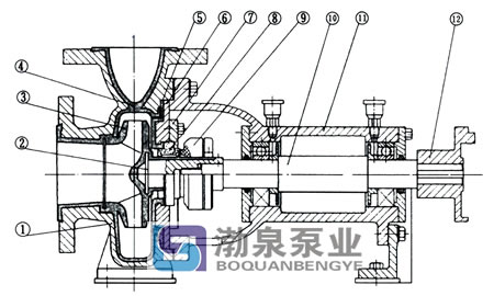 7.臥式安裝,結構緊湊、可與標準化工離心泵互換,方便用戶更換和使用;