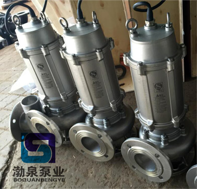 50WQRP10-10-0.75不銹鋼耐高溫排污泵是上海渤泉泵業制造有限公司的重點產品之一,可以經受100度的高溫。 這款不銹鋼耐高溫排污泵的泵殼和葉輪是精密鑄造的不銹鋼材質, 壁厚令人滿意,能起到耐腐蝕耐酸堿的作用,水泵外形美觀、結構緊湊、電機是國標銅線電機,具有抽送介質溫度高、安裝移動方便、防纏繞、無堵塞等特點。是一款高性能高品質的不銹鋼熱水排污泵。 50WQRP10-10-0.75不銹鋼耐高溫排污泵產品特點: 1、整體304或者316不銹鋼精密鑄造而成,304的出貨快,316材質的貨期長。 2、國標銅線電機, 采用高溫線的電機。 3、整套泵殼的厚度、葉輪的厚度都是相當令人滿意的! 4、機械密封、O型圈和電纜護套等都是耐腐蝕耐高溫材質。 5、出口是6公斤國標法蘭的, 可以配彎頭或者法蘭片,二選一。 6、電纜線標配8米,耐腐蝕耐高溫。 7、本產品可以選帶攪勻裝置(切割裝置), 有攪拌功能, 這個攪勻裝置在進出口下面, 隨著電機轉動, 攪勻裝置也跟著轉動,起到攪拌左右,能把水底的淤泥攪勻,再隨水一起排出。