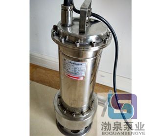 不銹鋼耐腐蝕排污泵QWP50-20-15-1.5使用單(三)相電源,整體不銹鋼結(jié)構(gòu)。配有切割裝置,耐腐蝕性能強(qiáng)(PH值4~10),能切斷長纖維、碎物、排污能力強(qiáng),能通過較大的顆粒直徑的污物、雜物,適用于污水污物輸送及排放。是特別為水中含有長纖維、雜質(zhì)多、垃圾多的環(huán)境設(shè)計(jì)的, 水利部件是無堵塞設(shè)計(jì)。此種水泵是電機(jī)、軸、泵一體的,使用時,水泵需潛入水中工作。
